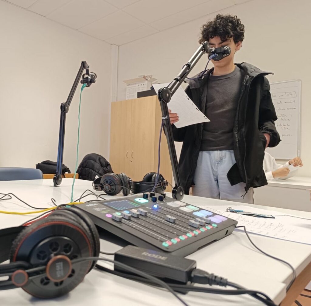 Sur une séquence de 3 heures, les élèves de la classe média ont travaillé en classe la notion d’angle journalistique à travers la réalisation d’une émission radio.