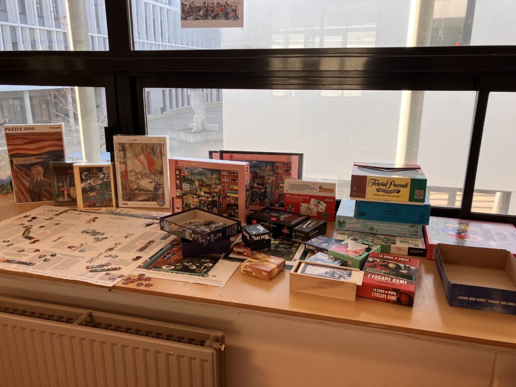 Le puzzle est installé sur la table basse dans la ludothèque – en évidence et accessible aux horaires d’ouverture du CDI.