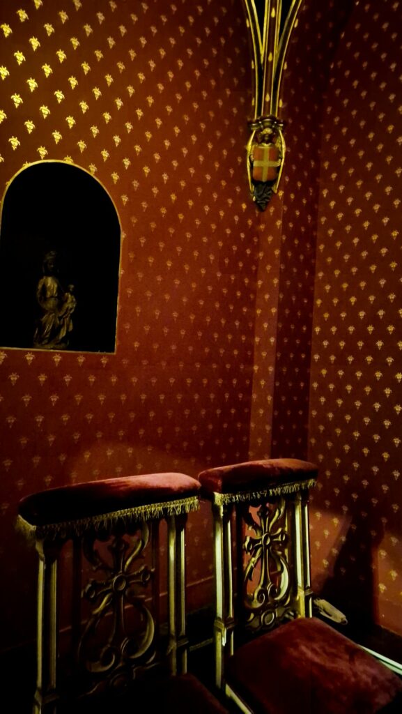 Moment fort de la visite : la découverte de la salle de prière de Marie-Clothilde de Savoie, épouse du prince Jérôme Bonaparte, cousin de Napoléon III, habituellement inaccessible au public.