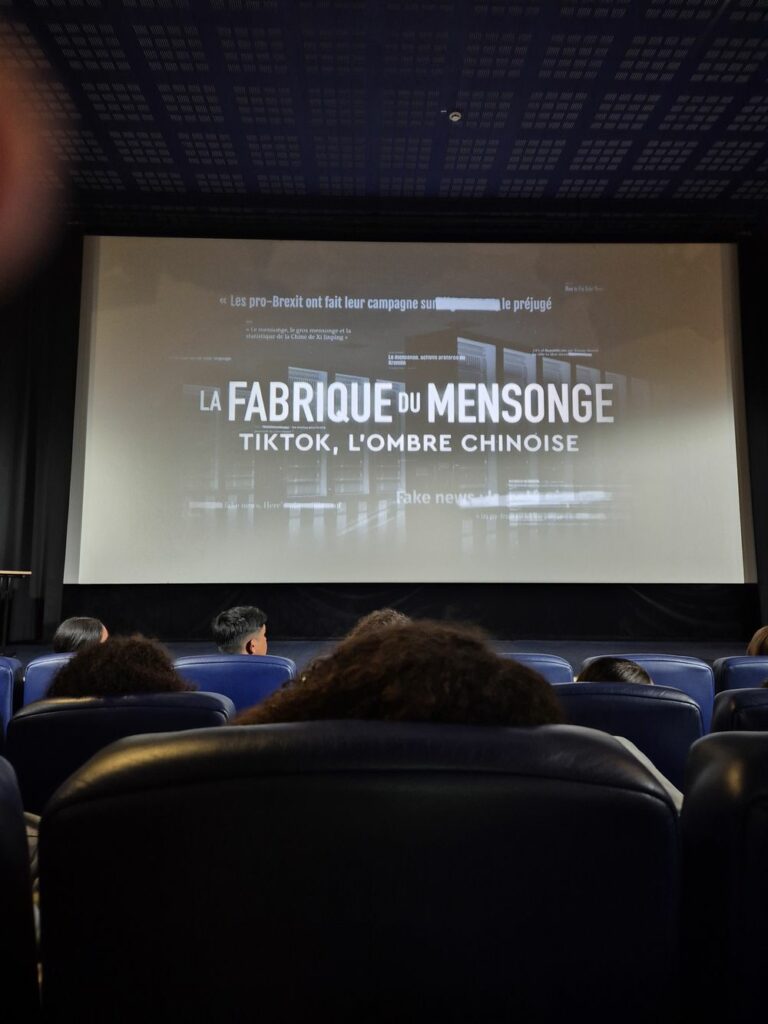 Les lycéens ont assisté à la projection du film TikTok, l’ombre chinoise, issu de la série documentaire La Fabrique du mensonge. Ce visionnage leur a permis de mieux comprendre les enjeux liés à l’application TikTok : collecte de données personnelles transmises à l’État chinois, censure de certains contenus et influence possible lors d’élections.