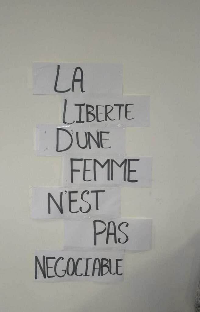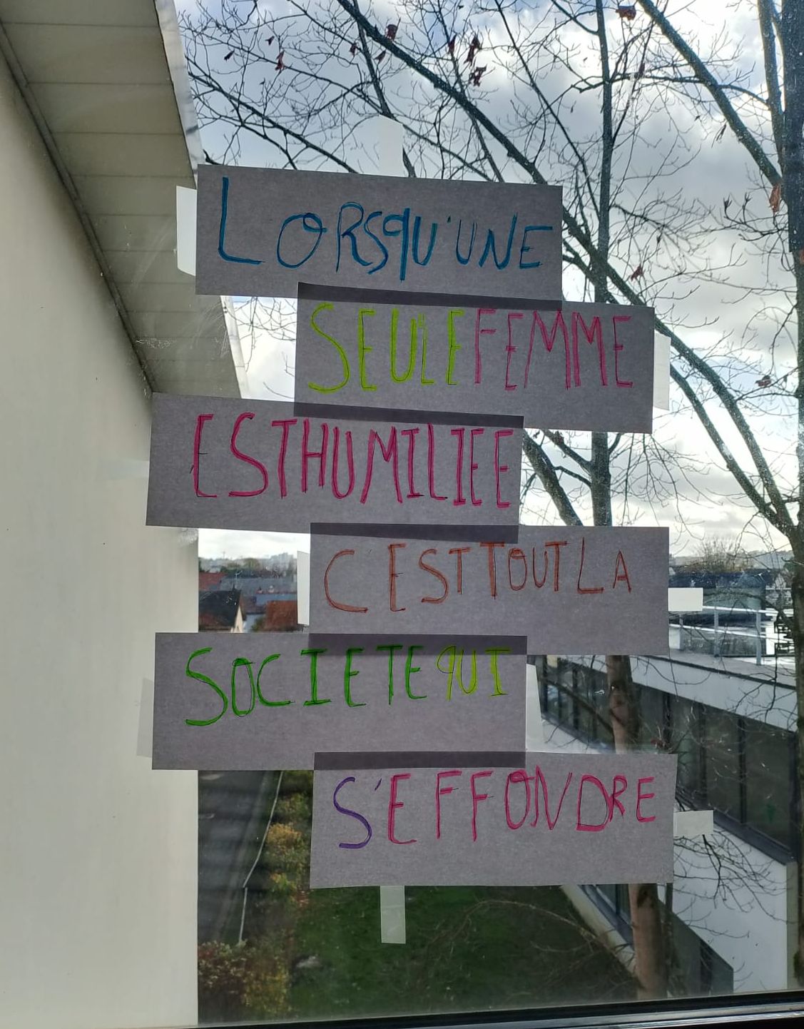A l’occasion de la journée du 25 novembre, la classe de 2FLE a réalisé des collages dans le bâtiment A du lycée, pour protester contre toutes les violences faites aux femmes.