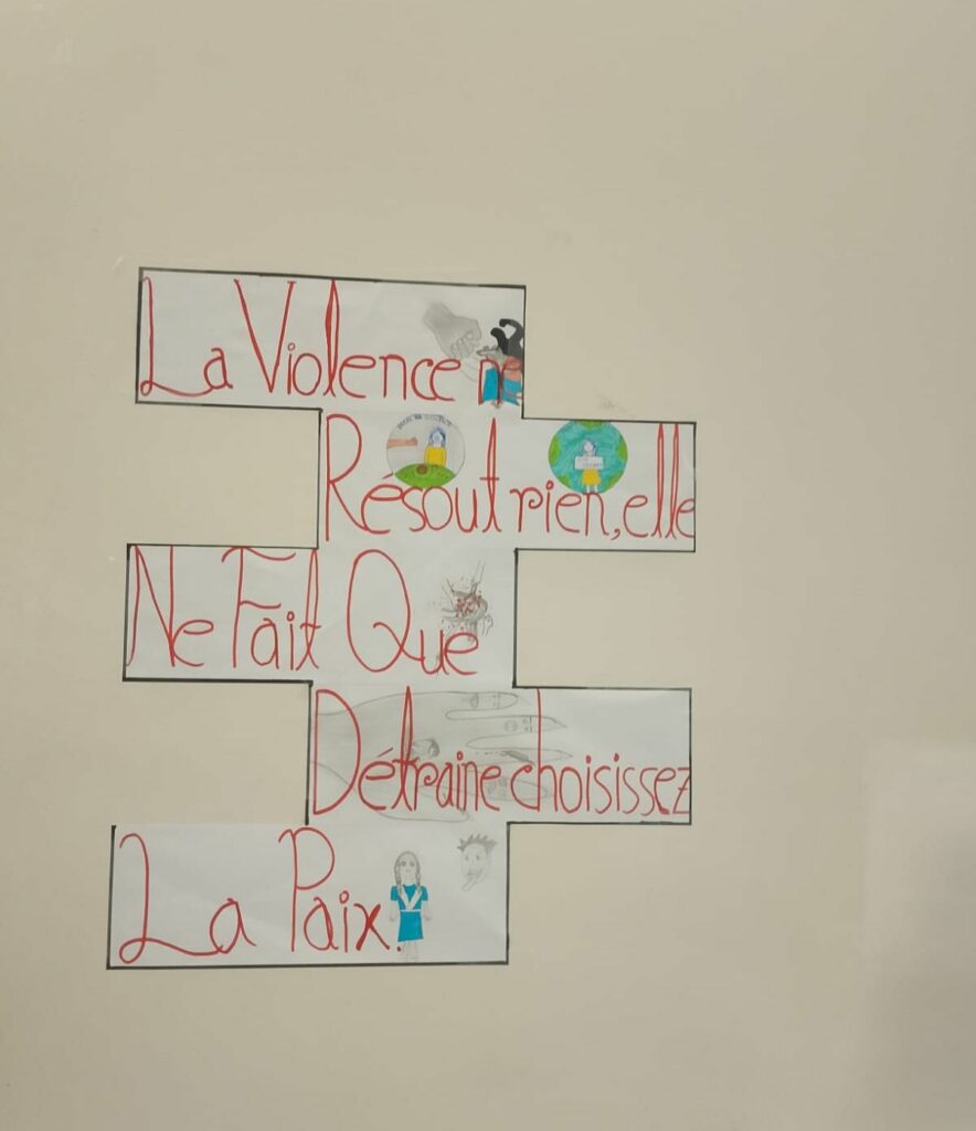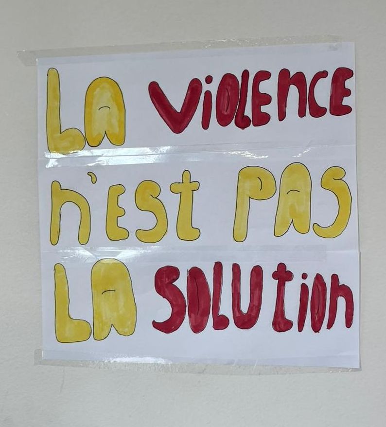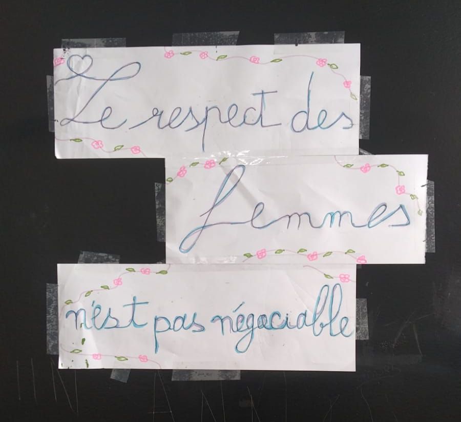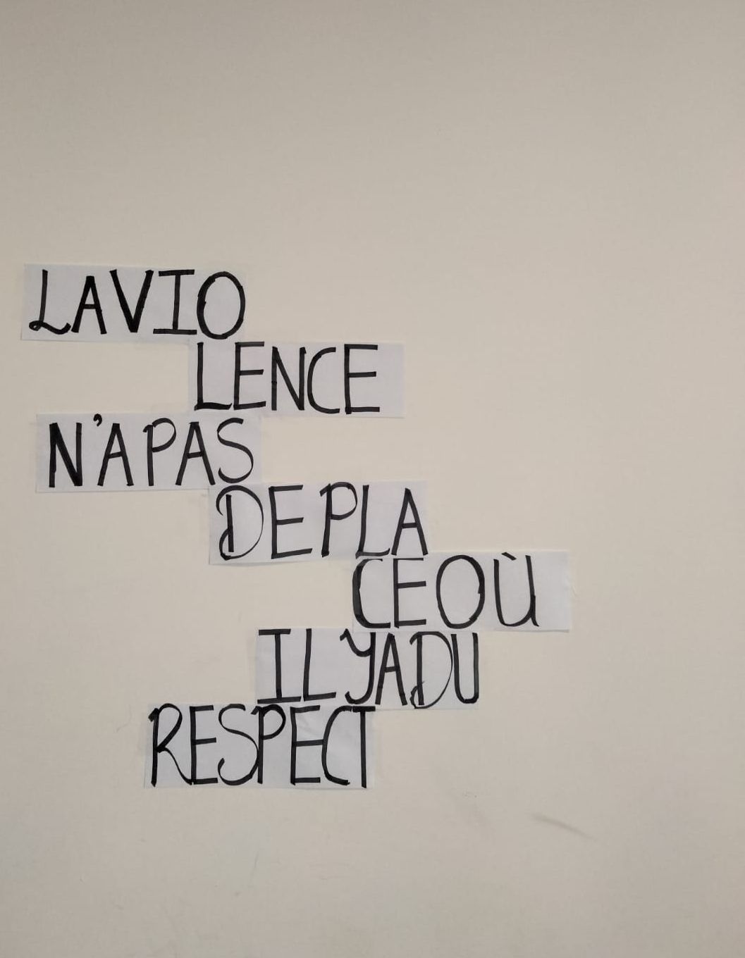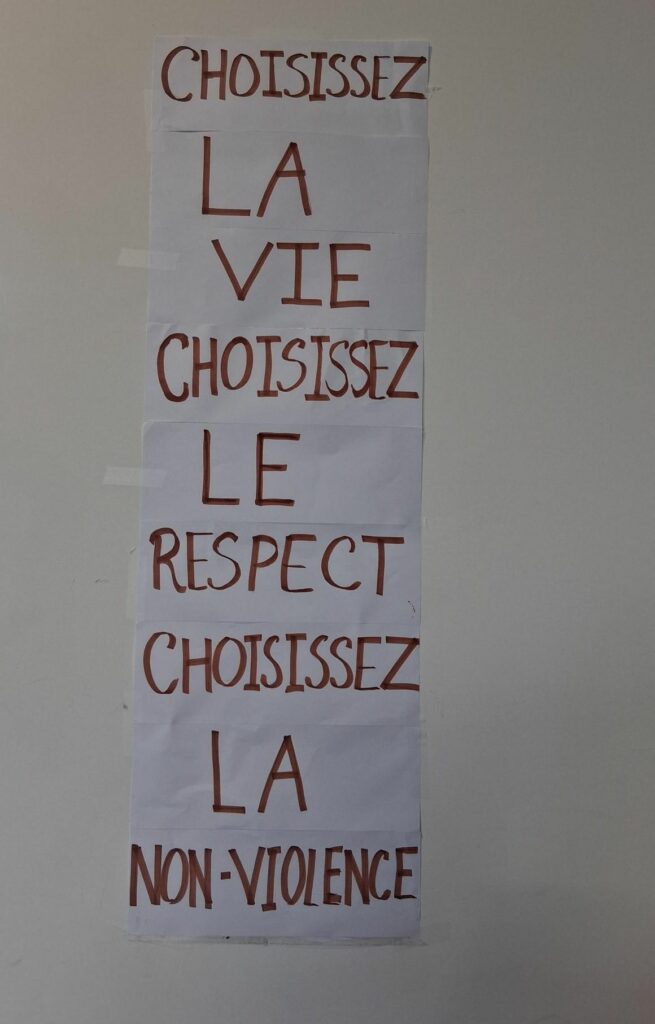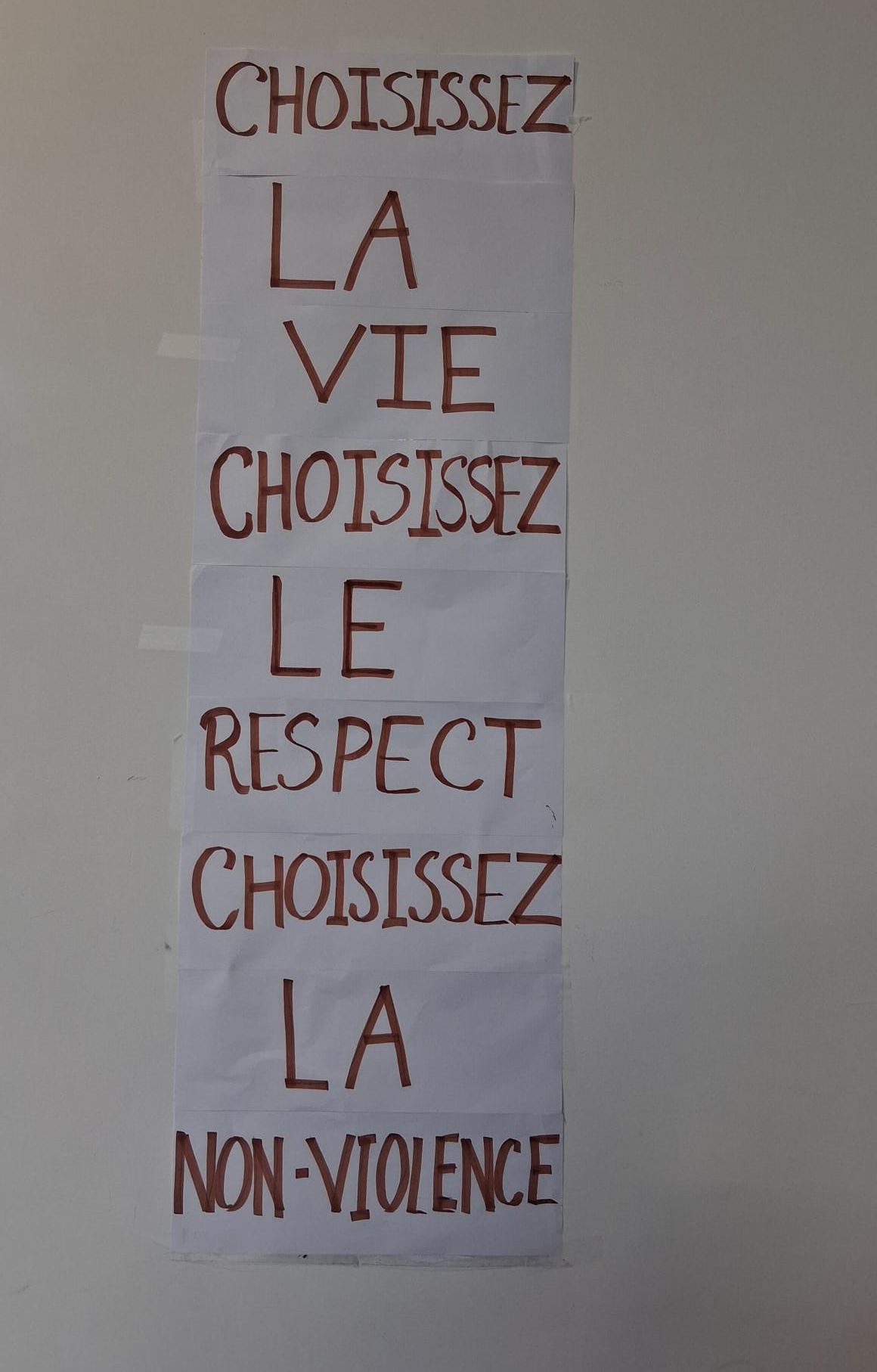 A travers des messages inspirés du livre Notre colère sur vos murs du Collectif Féminicides Paris (ouvrage accessible au CDI), les slogans proposent une meilleure manière de relationner, hors de la violence.