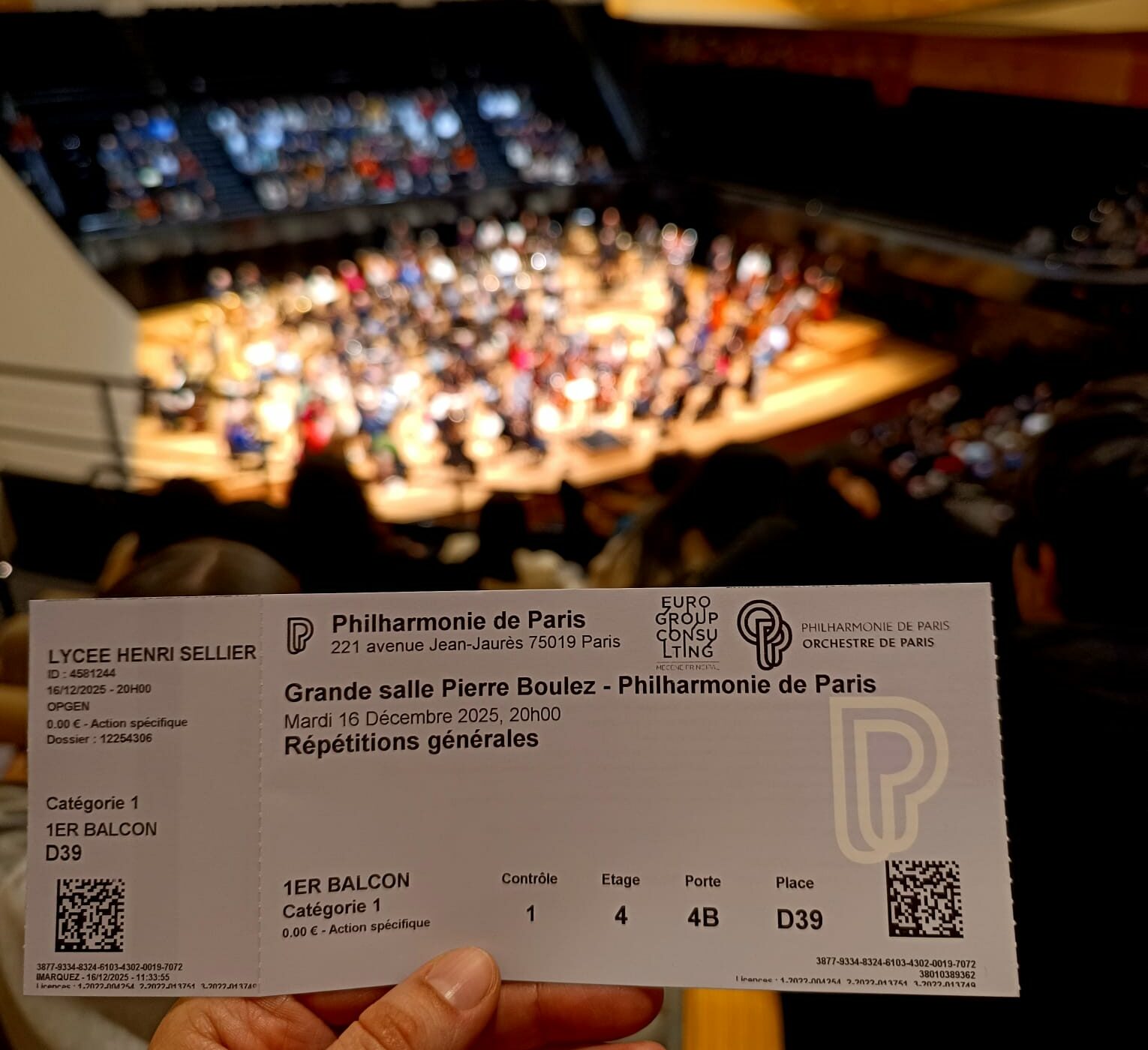 Le mardi 16 décembre, la classe de seconde 1 ainsi qu’un groupe de spécialistes en terminale générale se sont rendus à la philharmonie pour assister à la répétition générale d’une célèbre pièce de Ravel : Daphnis et Chloé.